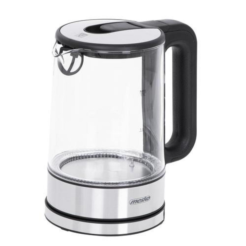 Mesko Home MS 1301B electric kettle 1.7 L 2200 W Black, Stainless steel, Transparent