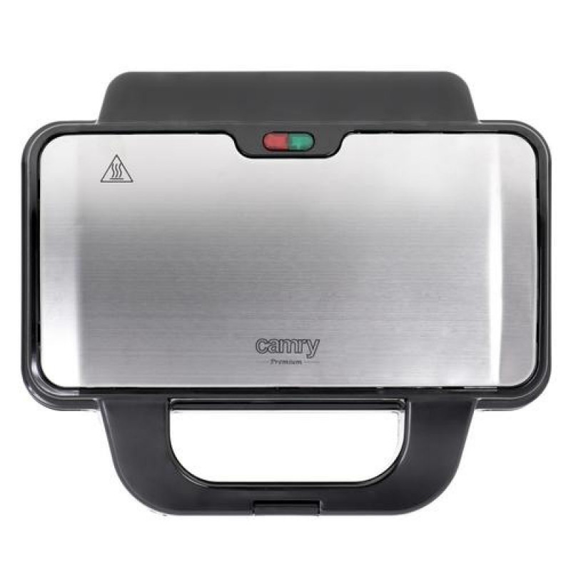 <b>Camry CR 3054 Sandwich Maker XL</b><br><br>An useful sandwich toaster that has 1300W of power. It allows to prepare 2 sandwiches at the same time. A special coat at the heating plates prevents the food from sticking to them. That is why keeping the device clean is very easy. A thermostat signalises when the plates are sufficiently heated up and controls the temperature and keeps it at a steady level during the whole toasting process This way the sandwiches are crispy and gold. The sandwich toaster can be stored in a vertical position - all for the user´s comfort.Camry Premium CR 3054. Product colour: Black, Silver, Cooking surface (W x D): 285 x 152 mm. Power: 1300 W, AC input voltage: 220-240 V, AC input frequency: 50 - 60 Hz. Width: 295 mm, Depth: 245 mm, Height: 105 mm. Package width: 315 mm, Package depth: 120 mm, Package height: 270 mm. Master (outer) case width: 375 mm, Master (outer) case length: 335 mm, Master (outer) case height: 555 mm