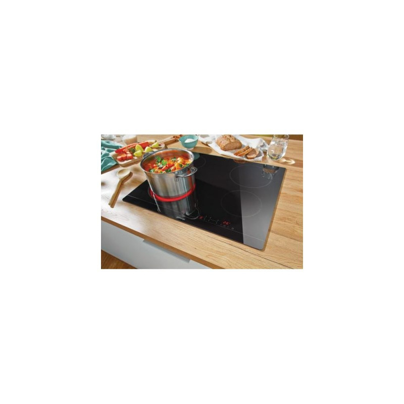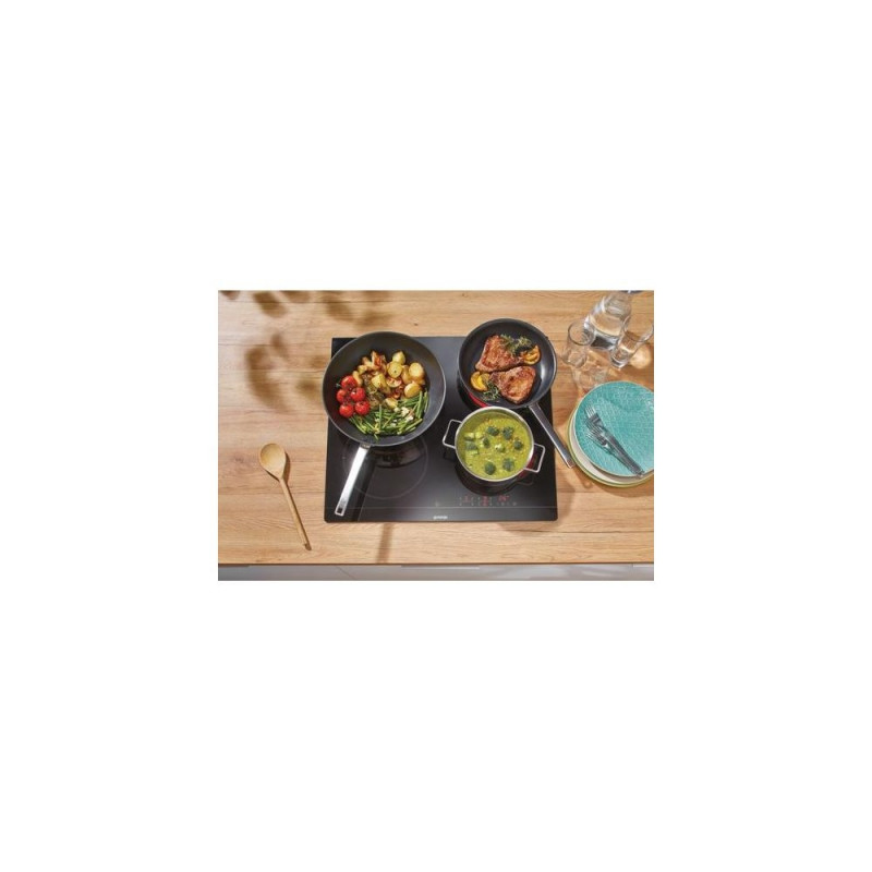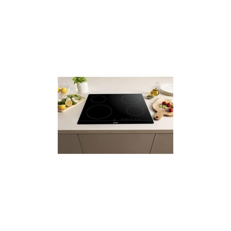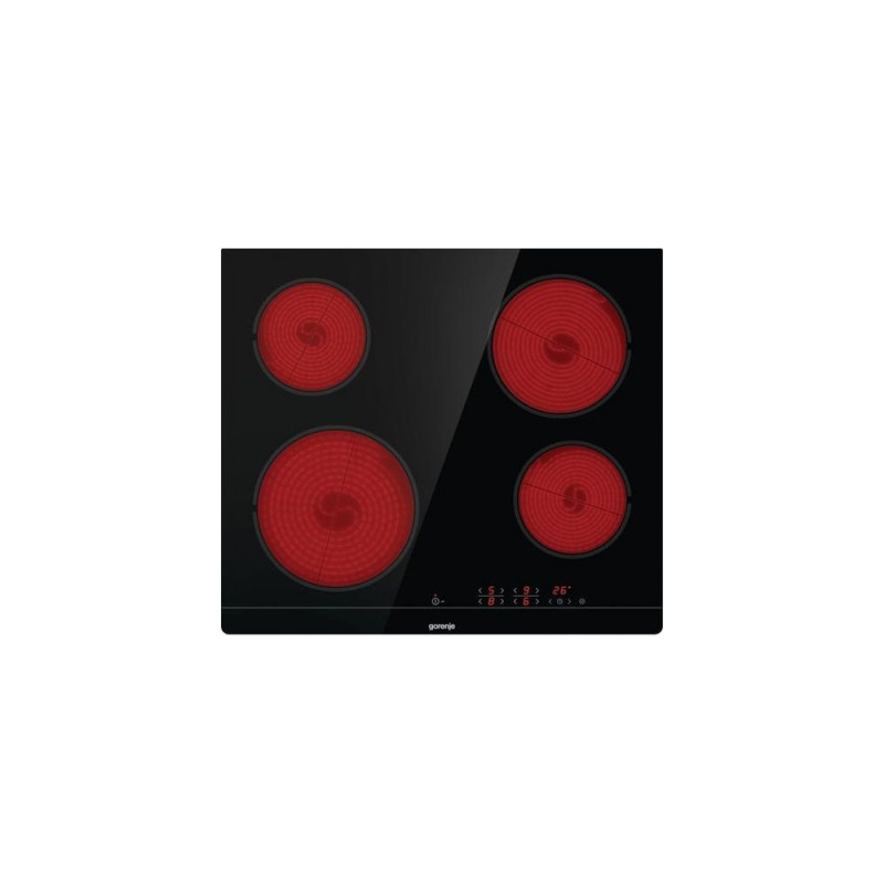 <b>Flush installation</b><br>Another bonus is definitely flush installation, which means smooth transition between the hob and the worktop. It is easier to clean and brings a modern, stylish look to your kitchen.<br><br><b>StayWarm</b><br>The StayWarm function keeps food at a constant temperature of 70˚C until the time is right to serve the meal. The food retains its original flavour and temperature until it is served.<br><br><b>Timer</b><br>The countdown timer can be set for up to 99 minutes. If the optimum cooking time for a particular dish is known from experience, the timer can be set and the hob will switch off automatically when completed. A beep will signal that the food is ready.<br><br><b>StopGo</b><br>The StopGo function stops the cooking and continues with the same settings after being re-activated.<br><br><b>SimpleControl</b><br>Upgrade your cooking experience with the new touch per zone user interface on Gorenje hobs. With this innovative feature, you'll have precise control over each cooking zone, allowing you to cook multiple dishes at once with ease. The touch controls are intuitive and responsive, making it easy to adjust the heat levels and settings for each zone. And with a sleek, modern design, this hob is the perfect addition to any kitchen. Experience the ultimate in cooking control with the new touch per zone user interface on Gorenje hobs.Gorenje Glaskeramisk häll ECT641BSC. Product colour: Black, Appliance placement: Built-in, Hob width size: 60 cm. Simmer cooking zone: 1200 W, Regular cooking zone: 1800 W, Large cooking zone: 2300 W. Control type: Touch, Control position: Top front, Timer duration: 99 min. Connected load (electric): 6500 W. Width: 595 mm, Depth: 520 mm, Height: 54 mm