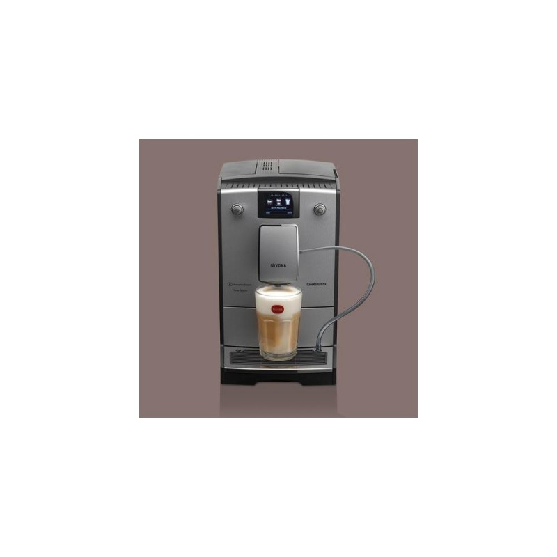 - NEW: Modern 3D in-mold design: Silver Line<br>- NEW: Especially quiet grinder<br>- MY COFFEE - a memorable, individual coffee recipe at the touch of a button<br>- Water tank with 2,2 l capacity<br>- Live programming of all recipes<br>- Extremely low noise, hardened steel conical grinder<br>- Sound insulation<br>- Removable brewing unit for easy and hygienic cleaning<br>- Coffee temperature adjustable in 3 stages<br>- Coffee strength adjustable in 5 stages<br>- ECO mode and zero watt energy-saving off switch<br>- Automatic rinse system for milk frother<br>- Hygienic care programmes for cleaning, descaling and rinsing at the touch of a button<br>- Statistics function and maintenance monitoring<br>- Cup illumination for an extra aesthetic appeal<br>- Automatic level monitoring for water and coffee beans<br>- Degree of grinding individually adjustable<br>- Up to 14 cm height-adjustable coffee outlet<br>- Heated cup stand<br>- 15 bar pump pressure<br>- Easy to move with rear rollers<br>- Hot water for tea<br>- Extra coffee powder compartment<br>- Aroma protection lid<br>- Including CLARIS fresh water filter, cleaning tablets, milk hose and measuring spoonNivona CafeRomatica 769. Product type: Espresso machine, Water tank capacity: 2.2 L, Built-in grinder. Product colour: Silver