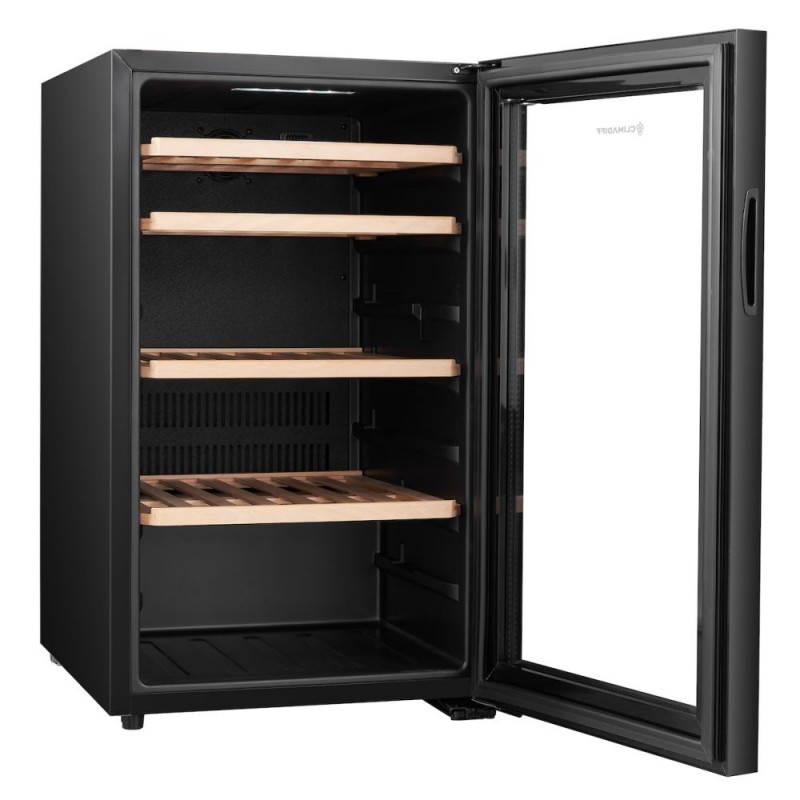 Veinikülmik Climadiff CEPAGE52F on uue disainiga, mille klaasuks paljastab naturaalsest pöögipuidust riiulid.