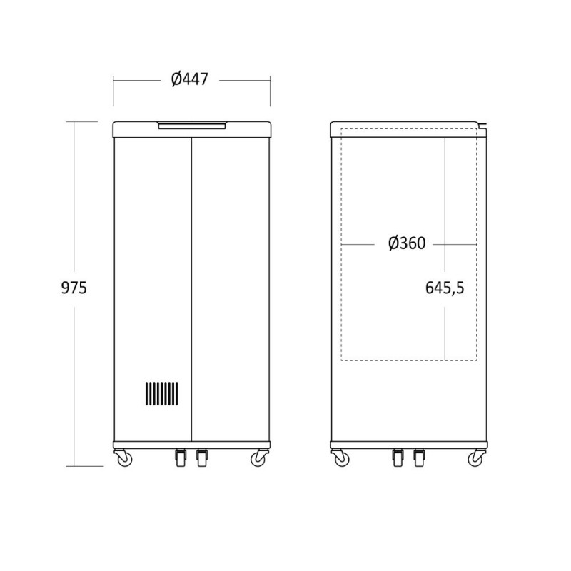 Külmikut on mugav transportida tänu 4 rattale ning kergele 18 kg kaalule.