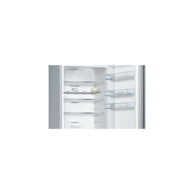 <br />Bosch Serie 4 KGN39VLEB. Total net capacity: 368 L. Door hinge: Right. Climate class: SN-T, Noise level: 39 dB. Fridge net capacity: 279 L, No Frost (fridge), Multi-Airflow system (fridge), Fridge interior light. Freezer net capacity: 89 L, Freezing capacity: 14 kg/24h, No Frost (freezer). Fresh zone compartment. Energy efficiency class: E, Annual energy consumption: 238 kWh. Product colour: Stainless steel