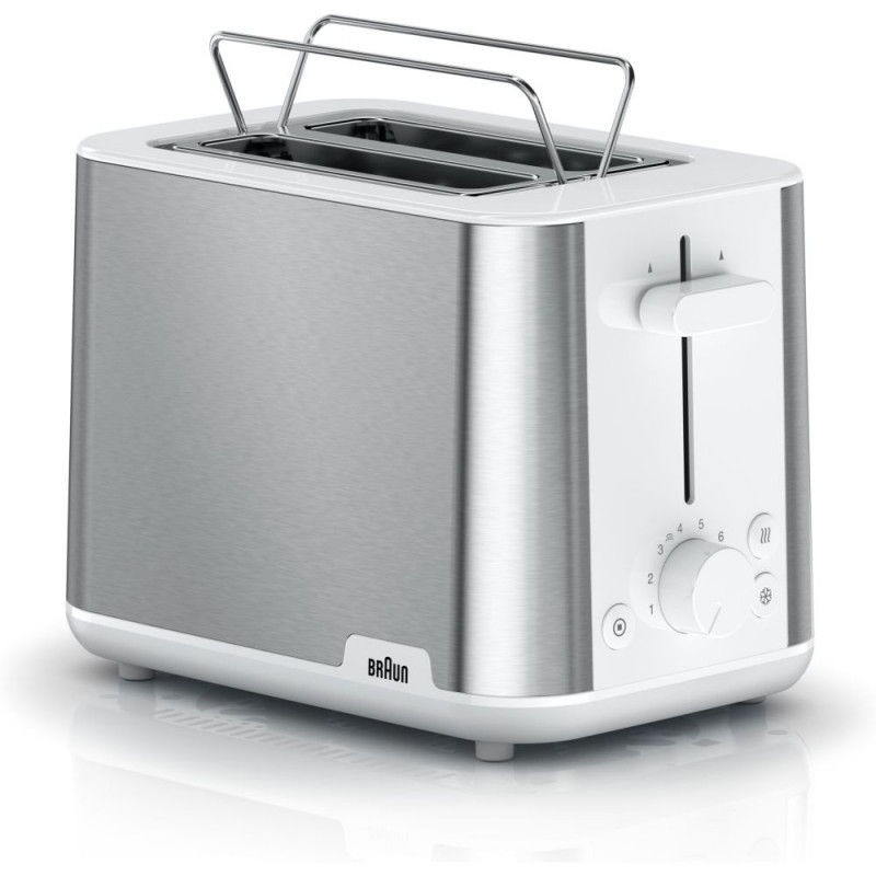 Braun Toaster PurShine HT 1510 WH (stainless steel/white, 900 watts, for 2 slices of toast)
