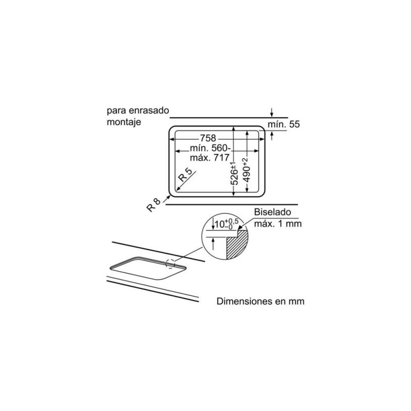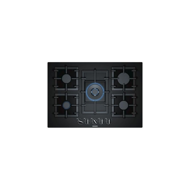 <br />Siemens EP7A6QB90. Product colour: Black, Appliance placement: Built-in, Hob type: Gas. Simmer cooking zone: 1000 W, Regular cooking zone: 1750 W, Large cooking zone: 3000 W. Control type: Rotary, Control position: Top front. Connected load (electric): 2 W, Connected load (gas): 11500 W, AC input voltage: 220-240 V. Width: 752 mm, Depth: 520 mm, Height: 45 mm