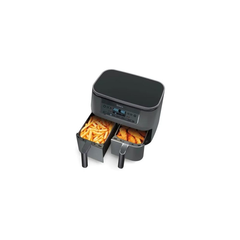 Ninja DZ300EU Dual Zone kuumaõhufritüür on uuenduslik ja mitmekülgne köögiseade, mis võimaldab valmistada korraga kahte erinevat rooga, kasutades selleks kahte eraldi küpsetustsooni. See tähendab, et saad samaaegselt küpsetada näiteks kana ja friikartuleid, ilma et maitsed seguneksid või toiduvalmistamise aeg pikeneks. Tänu Dual Zone tehnoloogiale saad valida kahe eraldi küpsetuskorvi vahel, mis annab sulle täieliku kontrolli toidu valmistamise üle ning võimaldab sünkroniseerida mõlema korvi valmimisaja, et kõik oleks valmis täpselt samal ajal.