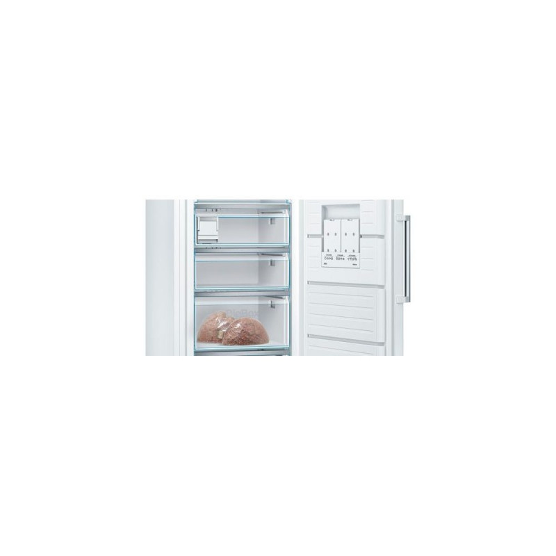 <br />Bosch Serie 6 GSN58AWCV. Freezer net capacity: 366 L, Climate class: SN-T, Freezing capacity: 22 kg/24h, Storage time during power failure: 26 h, Noise level: 38 dB, Star rating: 4*, No Frost system. Door hinge: Right. Lamp type: LED. Energy efficiency class: C, Annual energy consumption: 178 kWh. Product colour: White