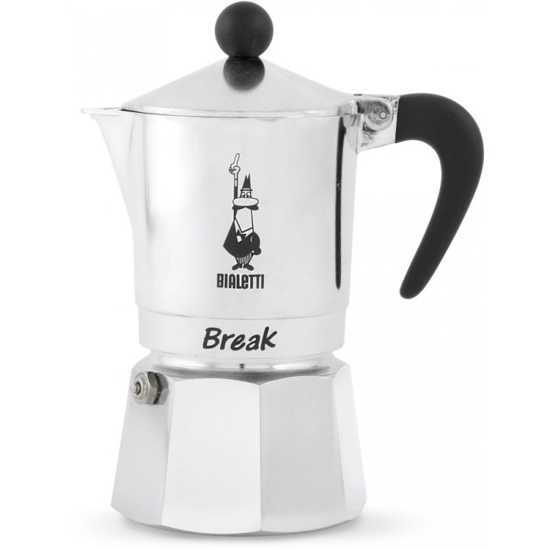 Bialetti Break. Tootetüüp: Moka kann, Toote värvus: Hõbedane, Korpuse materjal: Alumiinium. Laius: 110 mm, Sügavus: 70 mm, Kõrgus: 140 mm. Kogus pakendis: 1 tk, Pakendi kaal: 290 g. Saatekasti laius: 250 mm, Saatekasti pikkus: 250 mm, Saatekasti kõrgus: 170 mm.