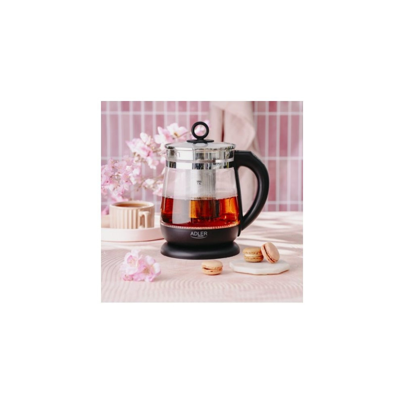 Kaasaegne disain ja funktsionaalsus ühes seadmes! Adler AD 1299 Black on klaasist veekeetja, millel on reguleeritav temperatuur ja sisseehitatud teelehtede sõel, loodud tõelistele teearmastajatele ning elegantse stiili hindajatele köögis.