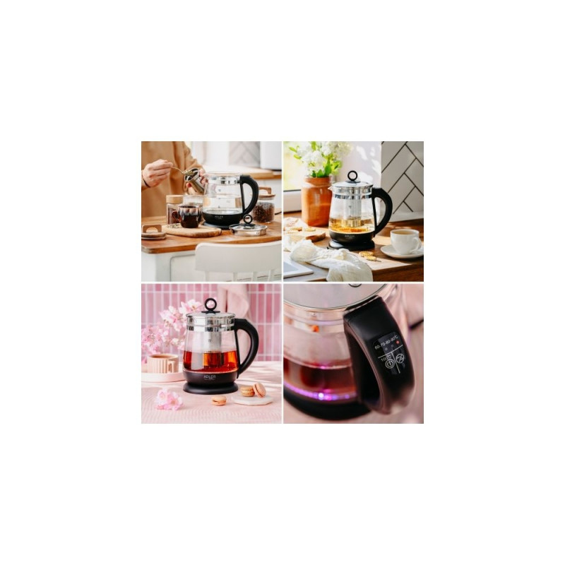 AD 1299 must klaasist veekeetja 1,5 l teetõmmisega ja temperatuuriregulatsiooniga 1,5 l led 60–100°c