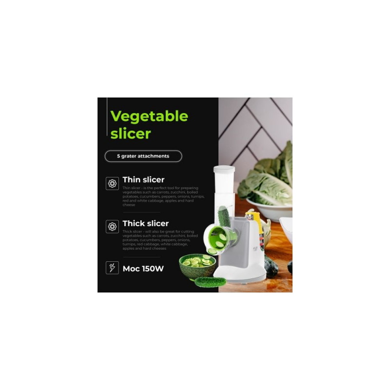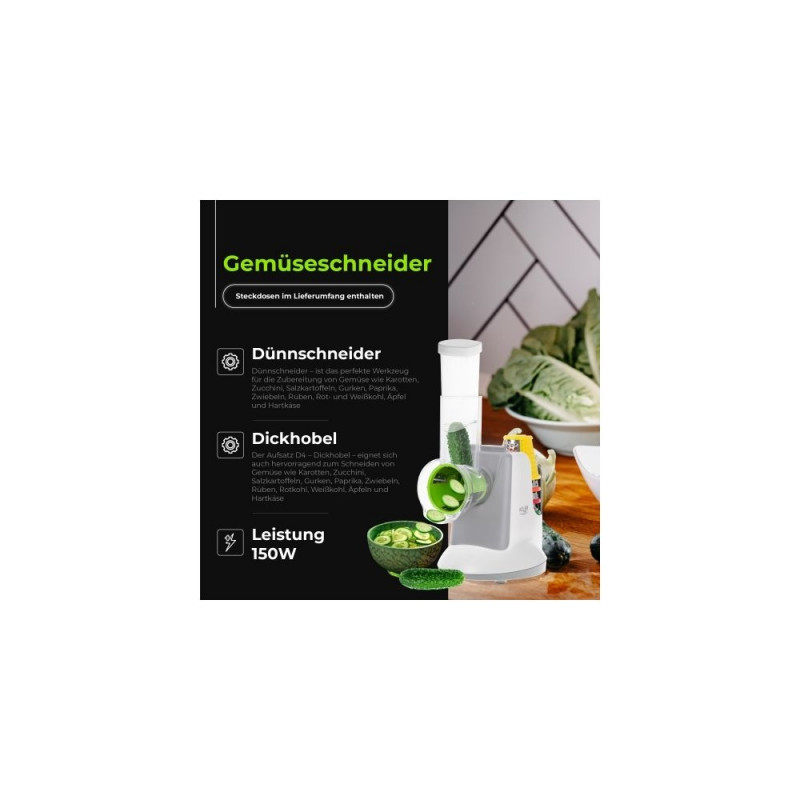 D3 – õhuke viilutaja – on ideaalne tööriist köögiviljade, nagu porgandid, suvikõrvitsad, keedetud kartulid, kurgid, paprika, sibul, naeris, punane ja valge kapsas, õunad ning kõva juustu viilutamiseks. Sellega valmistad hõlpsalt koostisosad salatite või muude roogade jaoks.