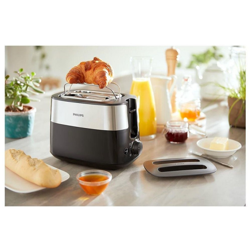 See kompaktne röster, millel on 8 seadistust ja 2 laia, reguleeritavat pilu, tagab ühtlase röstimise olenemata leiva tüübist. Sisseehitatud saiasoojendaja võimaldab soojendada erinevaid saiu ja pirukaid.