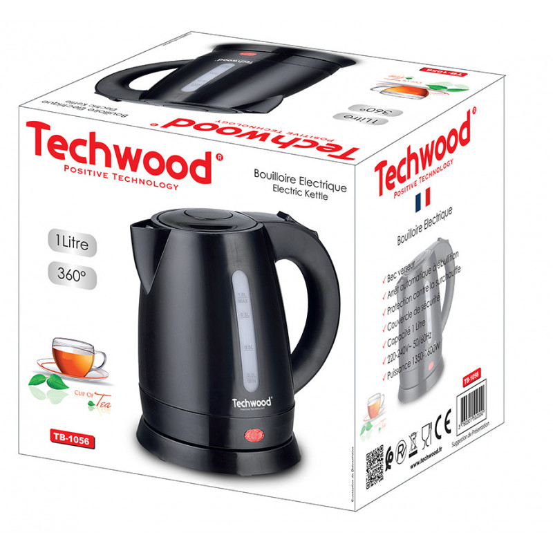 Techwood TB-1056 on praktiline 1-liitrine veekeetja. See on varustatud 360° pööratava alusega, mis võimaldab mugavat asetust igas suunas. Tila tagab täpse väljavalamise, automaatne keemislõpetus ja ülekuumenemiskaitse muudavad kasutamise turvaliseks. Turvalukustusega kaas lisab kaitset. Seade töötab pingel 220–240 V ja selle võimsus on 1350–1600 W.