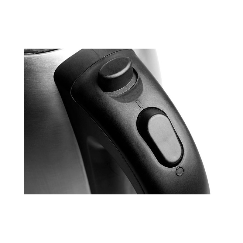 1,7-liitrise mahutavusega võimaldab see teil samaaegselt valmistada umbes 6-7 tassi jooki.Kaasaegne 360-kraadise alusega kontroller kontrollib vee keemistemperatuuri ja kaitseb veekeetjat ülekuumenemise eest. Kontrolleril on ka ohutusfunktsioon, mis lülitab veekeetja automaatselt välja, kui see lülitatakse sisse ilma veeta, ja kaitseb seda ülekuumenemise eest mitu korda järjest keetes.Veekeetja valgustatud sisemus näitab, millal see on sisse või välja lülitatud. Lihtsaks kasutamiseks on see varustatud veetaseme indikaatoriga. Paigaldatud on ka veefilter, mis püüab kinni keetmisprotsessi käigus tekkivad katlakiviosakesed. Veekeetjat on väga lihtne kasutada ja tänu 2200 W võimsusele on see väga tõhus.