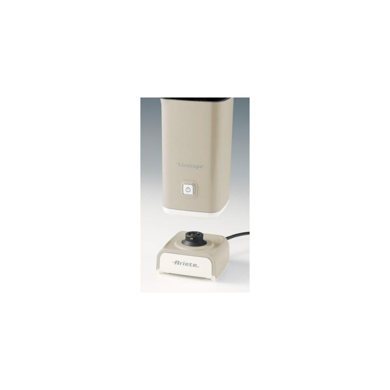 Multipurpose milk frother, easy to use, with a 500W power and a 140ml capacity for frothed milk and 250ml for hot milk. The transparent cap allows the control of the froth, and with a single button you can activate 2 functions: hot and cold froth. It's ideal for the preparation of different drinks in every moment: coffee and milk, cappuccino, milk cream, shaken coffee, hot or cold chocolate. The non-stick coating makes the cleaning super-easy. Automatically goes off and keeps the external surfaces cool.Ariete 2878/03. Type: Automatic, Product colour: Beige, Frothing capacity: 250 ml. Power source: AC, Power: 500 W. Width: 95 mm, Depth: 95 mm, Height: 220 mm. Warranty period: 2 year(s). Package width: 140 mm, Package depth: 110 mm, Package height: 230 mm