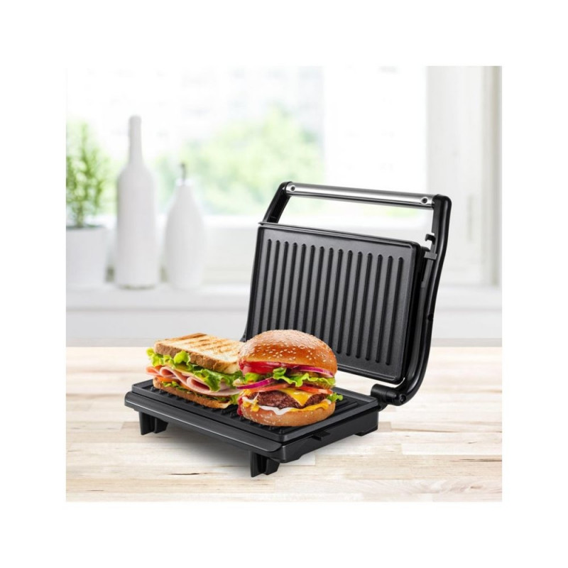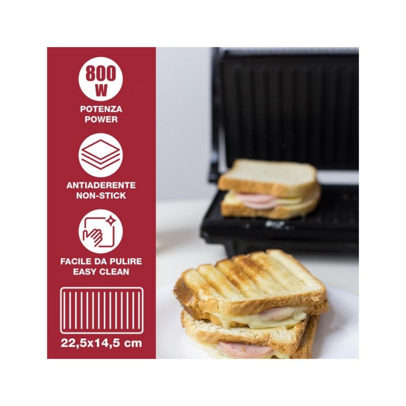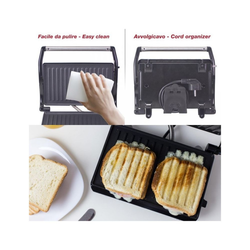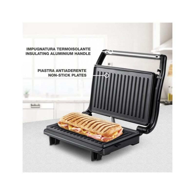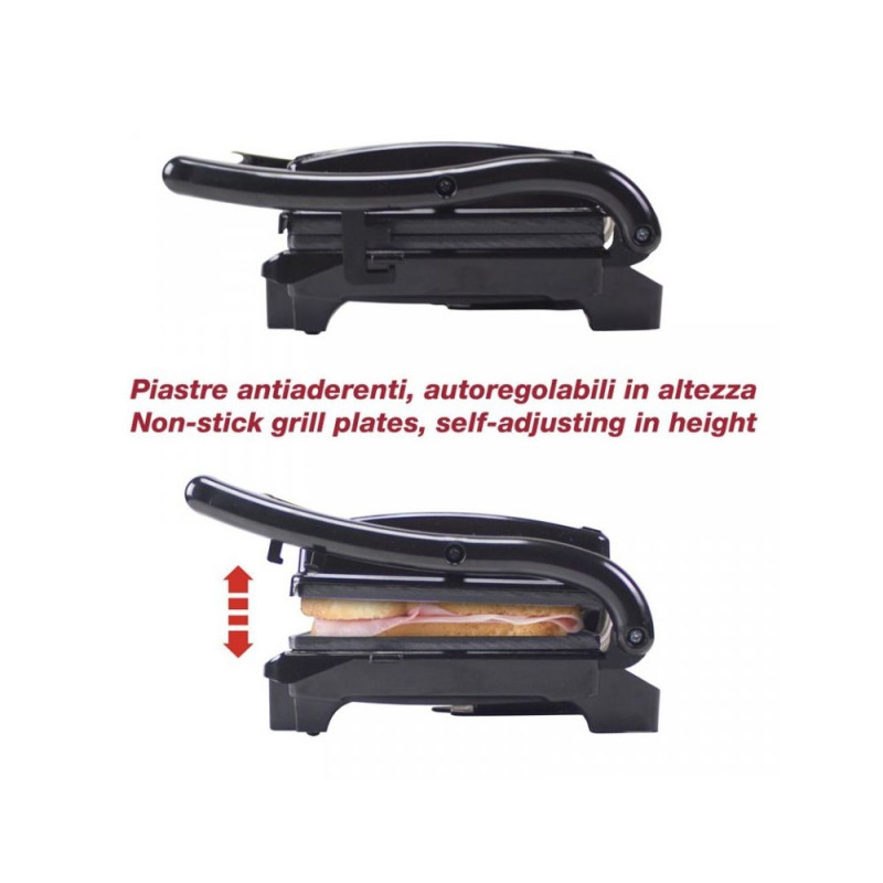 Kompaktne, praktiline ja tõhus: Beper Grill on ideaalne liitlane kuldpruuni röstsaia, täidlaste võileibade, grillitud liha, köögiviljade ja juustu valmistamiseks vaid minutitega. Terasest ja bakeliidist korpus tagab vastupidavuse ja kerguse, samas kui ribilised mittenakkuvad plaadid tagavad ühtlase küpsetamise ja on kergesti puhastatavad. Isereguleeruvad plaadid kohanduvad toidu paksusega, samas kui soojusisolatsiooniga käepide tagab täieliku ohutuse. Valgusti, lukustatava konksu, libisemiskindlate jalgade ja integreeritud juhtmehoidikuga on see ideaalne valik korrastatud ja funktsionaalse köögi jaoks. Plaadi mõõtmed: 22,5 x 14,5 cm