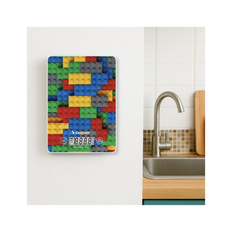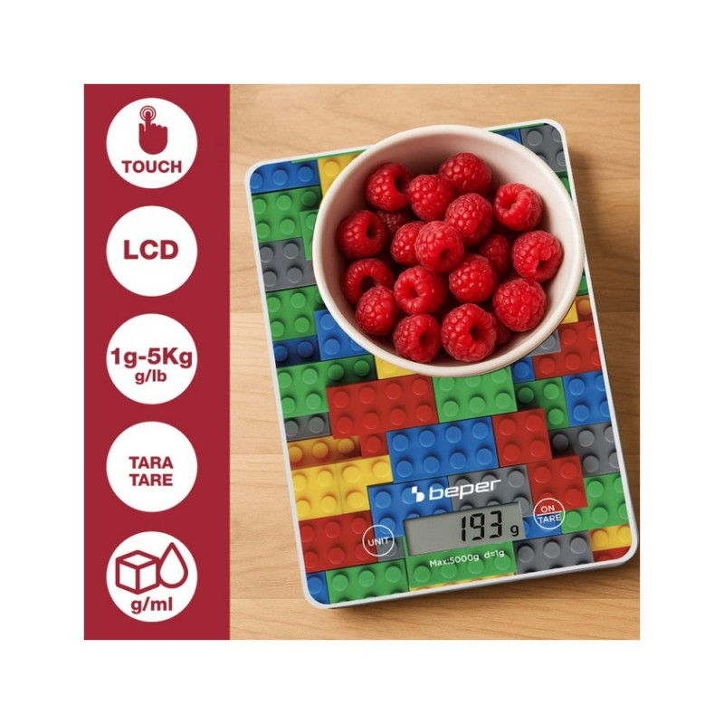 Beperi digitaalne köögikaal ühendab kompaktse disaini ja täiustatud funktsioonid, et kaaluda täpselt nii tahkeid kui ka vedelaid toiduaineid. Karastatud klaasist plaadi ja uuendusliku värvilise telliskivimustriga kaal sobib ideaalselt neile, kes otsivad praktilisust ilma stiili ohverdamata. Tara funktsioon võimaldab teil kaaluda mitut koostisosa järjest, samas kui puutetundlikud nupud ja LCD-ekraan tagavad lihtsa ja kohese kasutamise. Tänu tagumisele konksule saab selle köögis ruumi kokkuhoiuks riputada. Ülitäpne andur mõõdab 1 g kuni 5 kg, võimalusega valida grammide ja naelade vahel. Komplektis on automaatne väljalülitus ja patarei, mis tagavad kohese kasutuskogemuse.