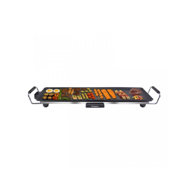 Suur küpsetuspind (70x23 cm) võimaldab teil valmistada mitut rooga korraga, samas kui mittenakkuv kate tagab tervislikuma toiduvalmistamise ilma rasva lisamata. 5-tasemeline reguleeritav termostaat võimaldab teil alati valida ideaalse temperatuuri, tagades täpse ja ühtlase küpsetamise. Tänu soojusisolatsiooniga käepidemetele ja eemaldatavale juhtmele saab grilli otse lauale tuua, muutes iga söögikorra jagamise hetkeks. Eemaldatav rasvavann on maksimaalse mugavuse tagamiseks nõudepesumasinas pestav. Oma suure võimsusega pakub see iga kord suurt jõudlust ja suurepäraseid tulemusi.