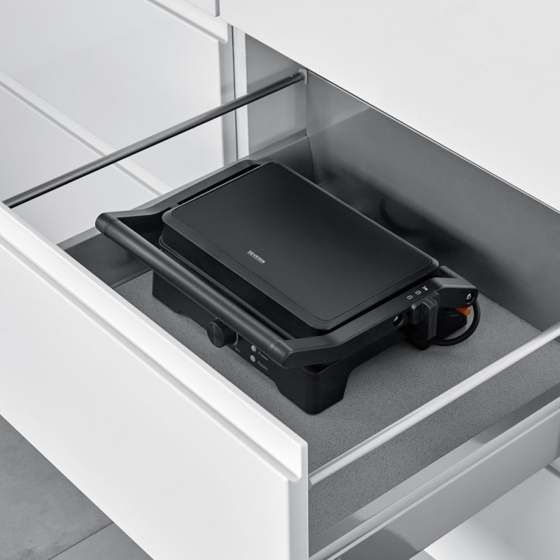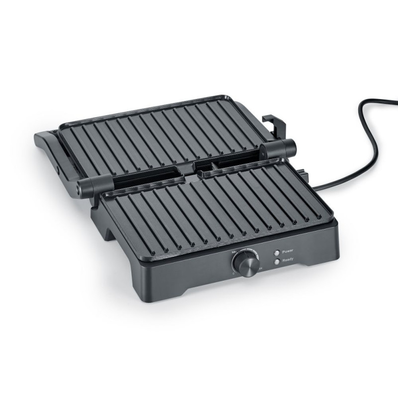 Mitmekülgne kontaktgrill tervislikuks toiduvalmistamiseks Avastage meie kontaktgrilli mitmekülgsed võimalused! Olenemata sellest, kas soovite grillida mahlaseid steike, valmistada maitsvaid võileibu või küpsetada täiuslikke panini'sid, on see grill teie jaoks ülim köögitööriist. Tänu paindlikule disainile saate oma menüüd hõlpsalt varieerida ja luua erinevaid roogasid, mis sobivad nii igapäevaseks kui ka erilisteks sündmusteks.Tervislik madala rasvasisaldusega grillimine Meie kontaktgrilli üks suurimaid eeliseid on võime grillida madala rasvasisaldusega. Tänu PFAS-vabadele grillplaatidele ei pea te õli lisama, mis tähendab, et saate oma lemmikroogasid nautida tervist ohverdamata. Grillröster on loodud kogu väljavoolava rasva püüdmiseks, mis koguneb mugavasse tilgaalusesse. See muudab toidu nii maitsvaks kui ka tervislikuks, ideaalne teadlikule tarbijale.XL grillimispind suurte portsjonite jaoks XL grillimispinnaga, mille mõõtmed on 28 x 17 cm, on teil palju ruumi suurte röstsaia või panini' viilude grillimiseks. Olenemata sellest, kas valmistate toitu perele või kutsute külalisi külla, saate hõlpsalt korraga valmistada mitu portsjonit. See säästab aega ja muudab toiduvalmistamise tõhusamaks.Ideaalne siseruumides kasutamiseks Meie kontaktgrill on ideaalne valik siseruumides kasutamiseks, mis tähendab, et saate grillimisest rõõmu tunda aastaringselt, olenemata ilmast. Selle kompaktne suurus muudab selle hoiustamise lihtsaks ja kasutajasõbraliku disainiga on sellega lihtne alustada. Olenemata sellest, kas olete kogenud kokk või algaja, hindate selle grilli pakutavaid hämmastavaid tulemusi. Kokkuvõtteks võib öelda, et meie kontaktgrill pakub palju eeliseid tervisliku ja mitmekesise toiduvalmistamise jaoks, muutes selle teie köögis asendamatuks tööriistaks. Tellige juba täna ja kogege erinevust!