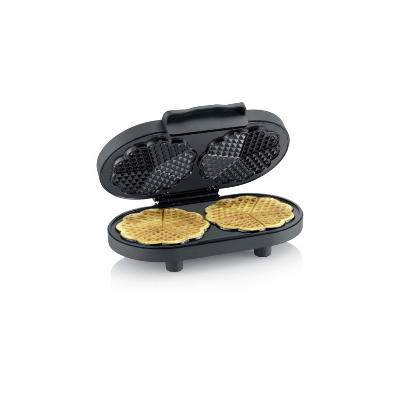 Topeltvahvliraud Topeltvahvliraud kahe südamekujulise vahvli samaaegseks küpsetamiseks Suur võimsus (1200 W) ja reguleeritav temperatuuri reguleerimine tagavad, et mõlemad vahvlid tulevad just sellised, nagu soovite PFAS-vaba kattega taldrikud Kvaliteetne kate muudab puhastamise imelihtsaks ja tagab tervisliku ja PFAS-vaba vahvlinaudingu