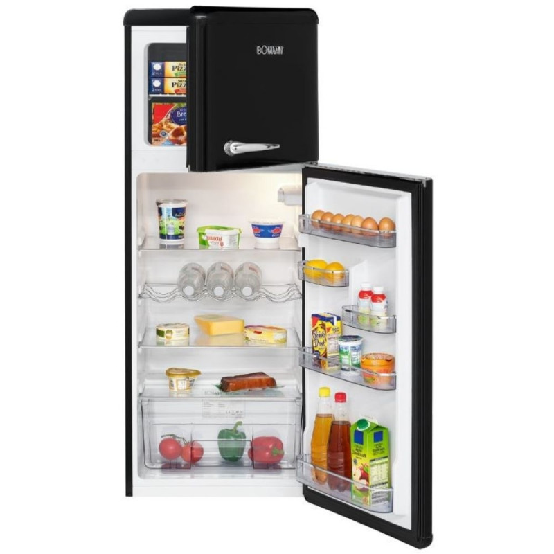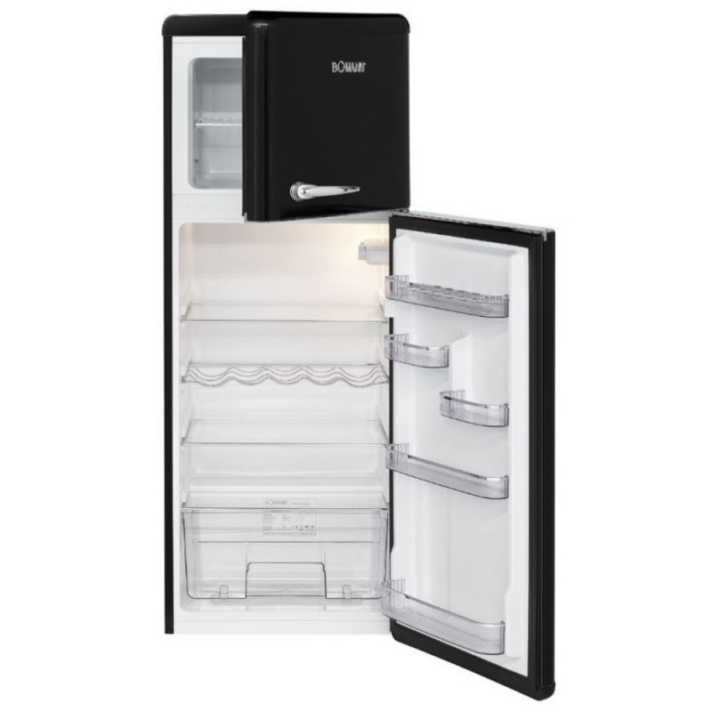 Külmikus on kaks kohandatavat klaasriiulit, juurviljakast klaaskaanega ja kroomist pudelihoidja.