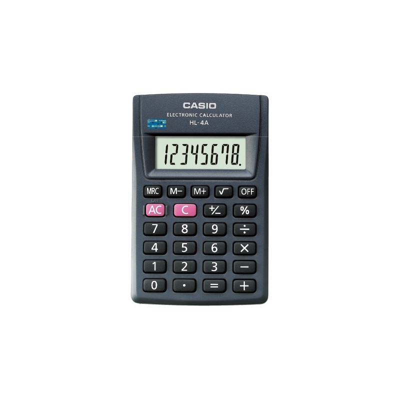 Taskukalkulaator Casio HL-4A - 8 numbriline ekraan, protsentarvutus, 87x56x9mm, patarei LR54, Standa