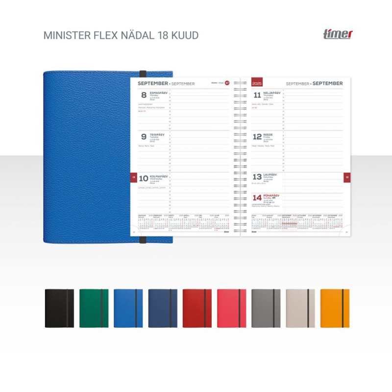 Raamatkalender Minister FLEX sinine nädal H 18 kuud alates juuli 2025a, spiraalköide, kummist kinni