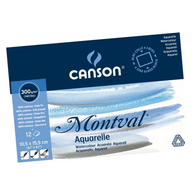 Akvarellplokk Montval 10,5x15,5/300g 12 lehte plokis, liimitud küljed