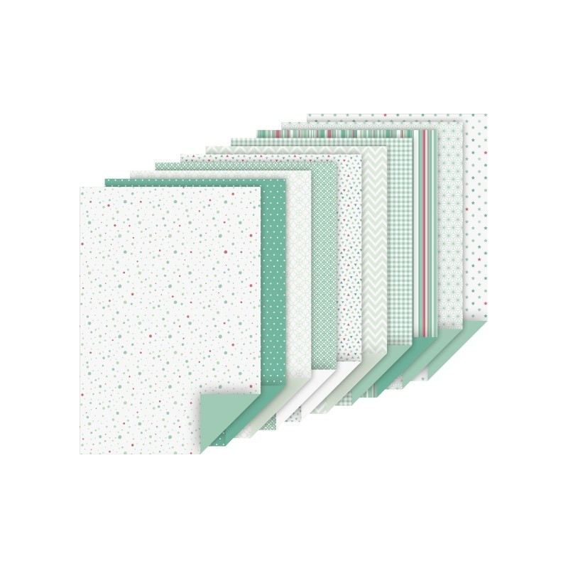 Käsitöökartong A4 100g/220g 10+10lehte pakis, mündi rohelised toonid, Heyda
