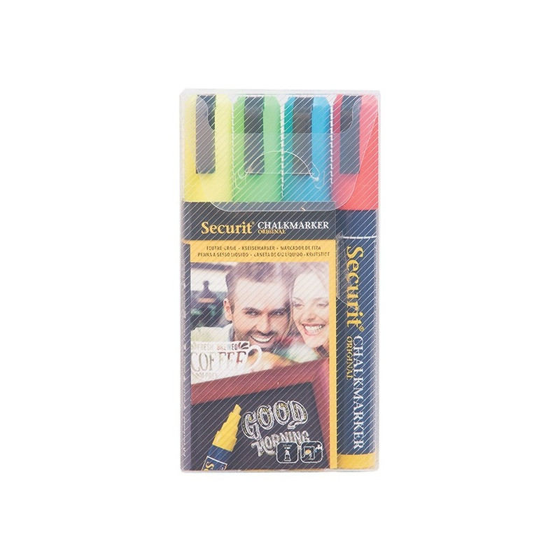 Tahvlimarkerid SECURIT Liquid Medium, kriiditahvlile 2-6mm, pakis 4 erinevat värvi/ kompl.