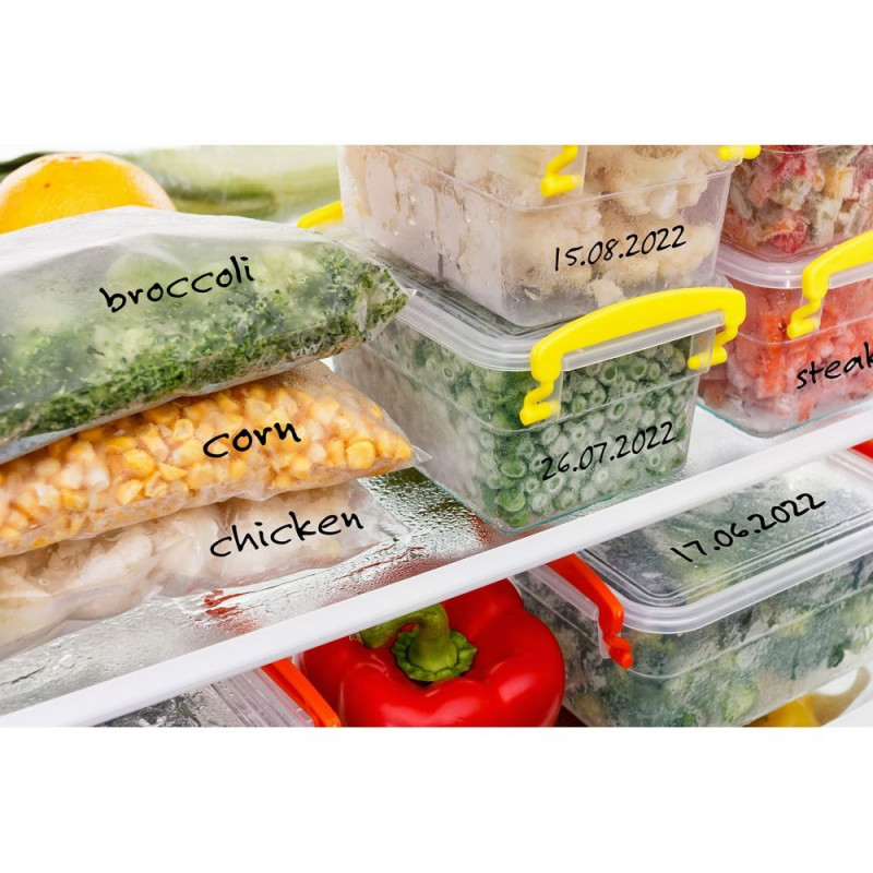 • kiri on sügavkülma kottidel ja sügavkülmiku etikettidel püsiv ja kulumiskindel, kuid eemaldatav siledatelt plastpurgidelt ja klaasanumatelt.