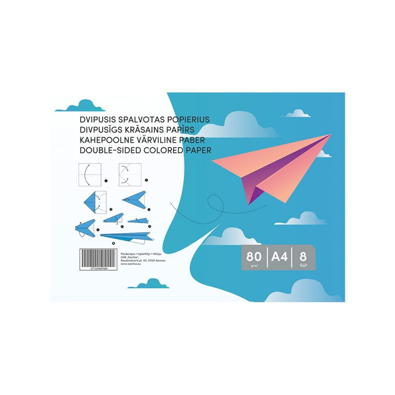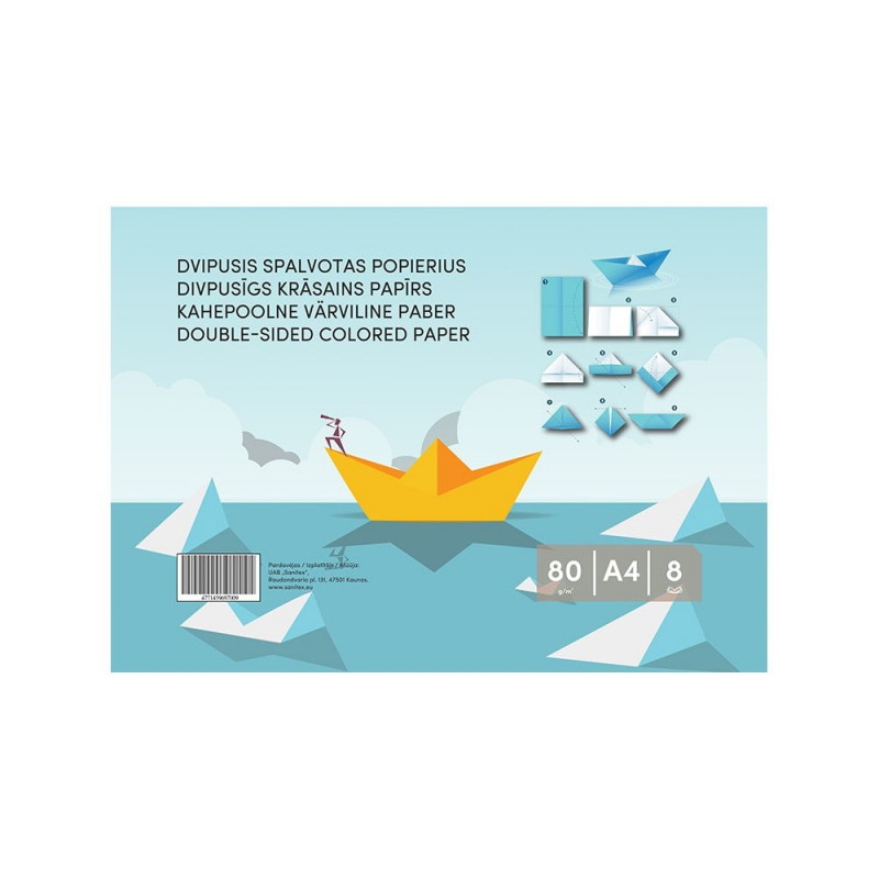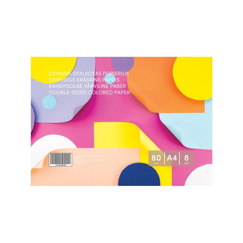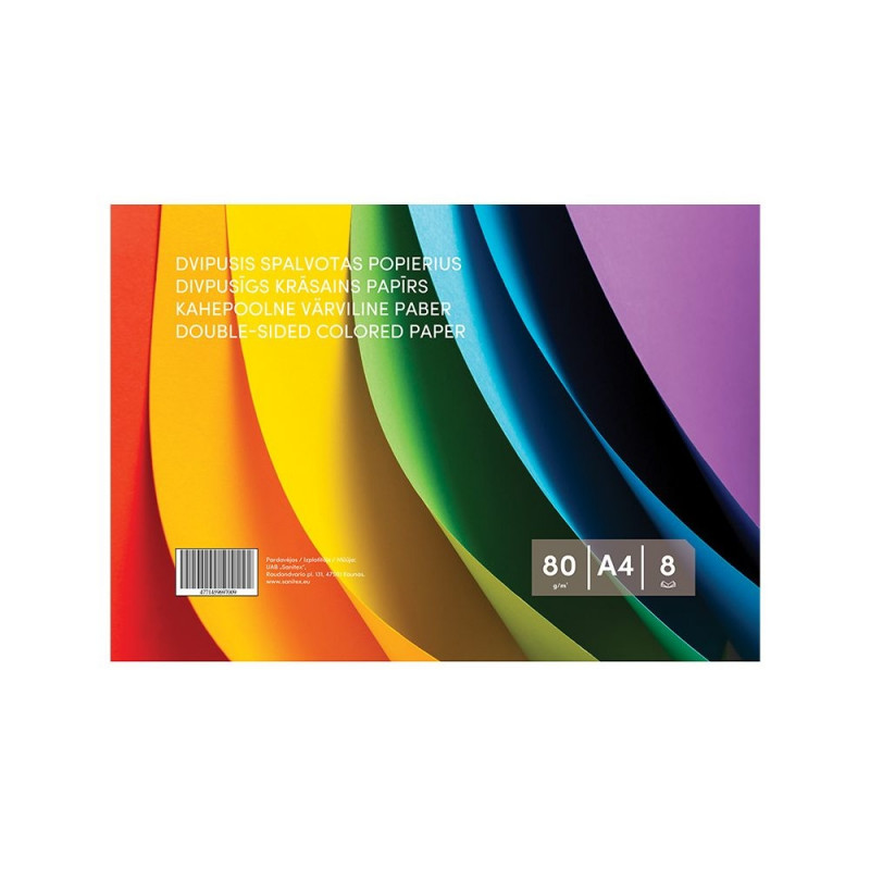 Kahepoolne värviline paber, A4, 8 lehte, 80gsm