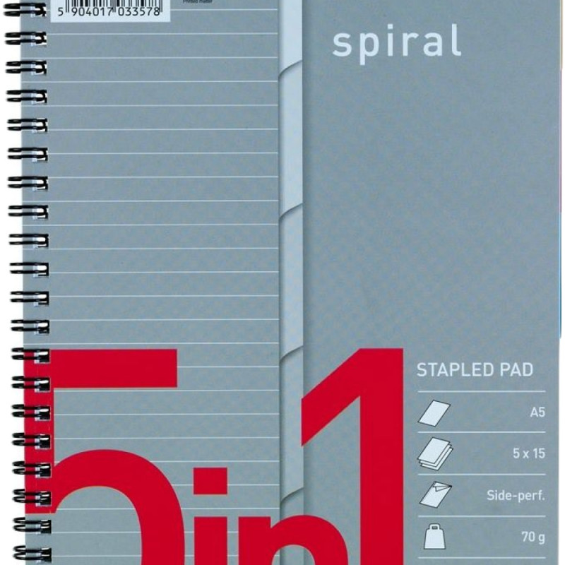 Kaustik spiraalköites A5+ jooneline BANTEX 5in1 registriga kartongkaaned 75 lehte