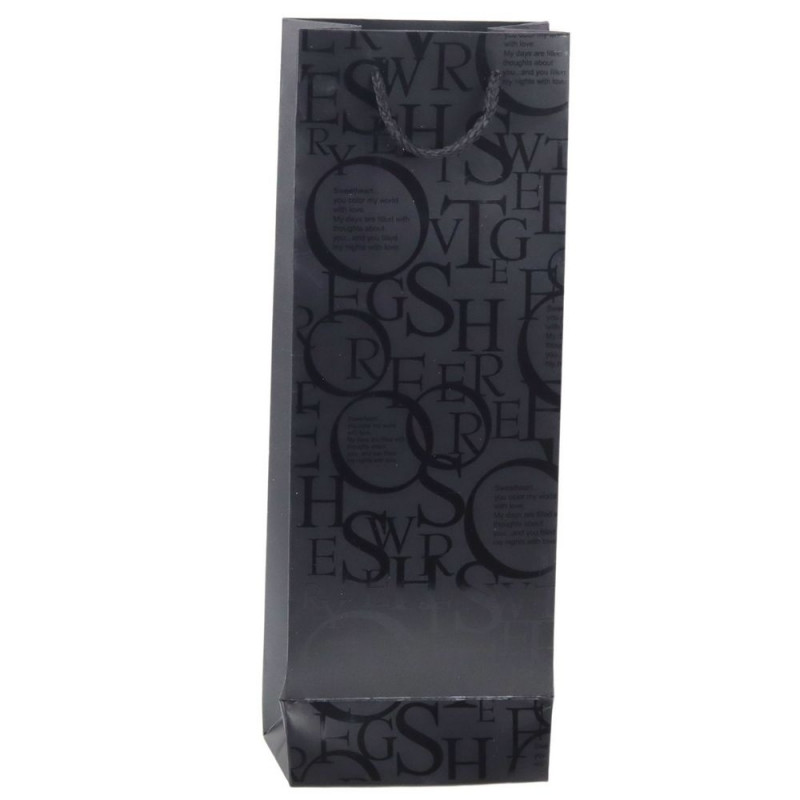 Elegantne kingitusekott pudelile on suurepärane viis alkoholi või muu joogi efektselt pakkimiseks igaks tähtpäevaks. Kott on valmistatud kvaliteetsest paberist ning paistab silma minimalistliku ja luksusliku disainiga. Kogu koti pind on kaetud peene mustriga, mis koosneb kirjadest – need kaunistavad kotti diskreetselt, andes sellele modernse ja prestiižse välimuse.