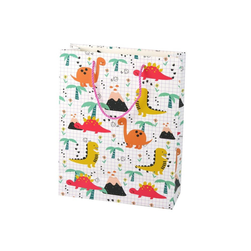 Dinosauruste motiiviga kinkekott on erakordselt armas ja loominguline viis pakkida kingitus dinosauruste austajale. See kott paistab silma nii värvikombinatsiooni kui ka detailide poolest, muutes selle kingituse enda jaoks ainulaadseks elemendiks.