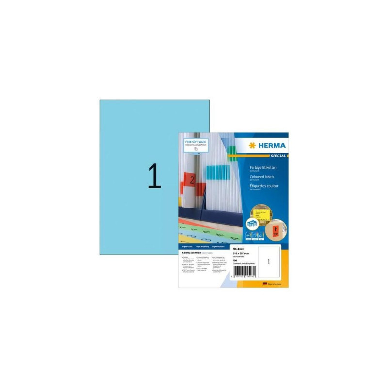 HERMA Coloured Labels A4 210x297 mm blue paper matt 100 pcs.