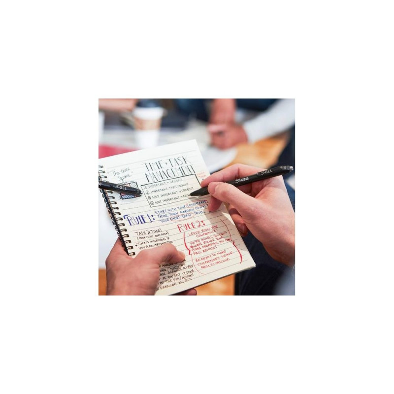 The power of Sharpie® is now in a gel pen. The Sharpie S-Gel features no smear, no bleed technology to deliver an exceptional writing experience. It features intensely bold colors for always vivid writing, while the contoured rubber grip provides you a comfortable writing experience during any writing task. Finally, its sleek design and matte finish make it a pen you’ll be hesitant to loan out. Available in multiple colors and designs, Sharpie S-Gel offers a smooth writing experience at home, at school, or in the office.Sharpie S-Gel. Type: Retractable gel pen, Writing colours: Black, Product colour: Black. Package type: Blister. Quantity per pack: 3 pc(s)