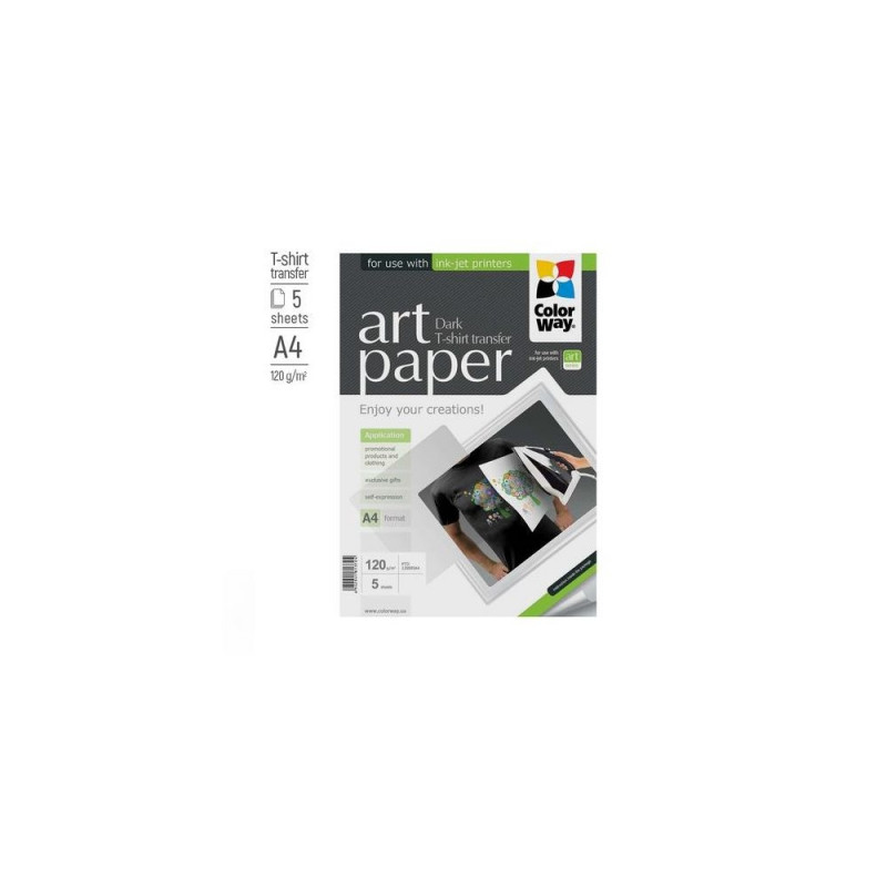 <b>If you want to make an original gift or express your creative side - this paper is for you. Special paper for inkjet printing that allows you to transfer a printed image onto dark cotton with an iron or thermo. Pigment ink for printing is recommended. This paper model is intended only for inkjet printing and personal use.</b>Colorway PTD120005A4. Recommended usage: Inkjet printing, Suitable for surface type: Fabric. Sheets quantity: 5 sheets