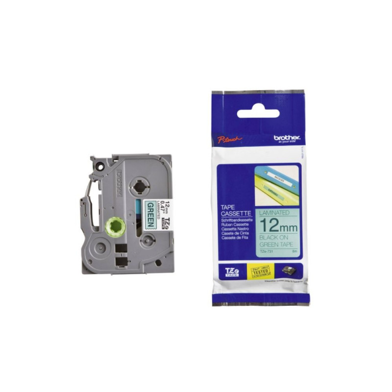Kleepkirjalint/markeerimislint BROTHER TZE-731 12mm must rohelisel