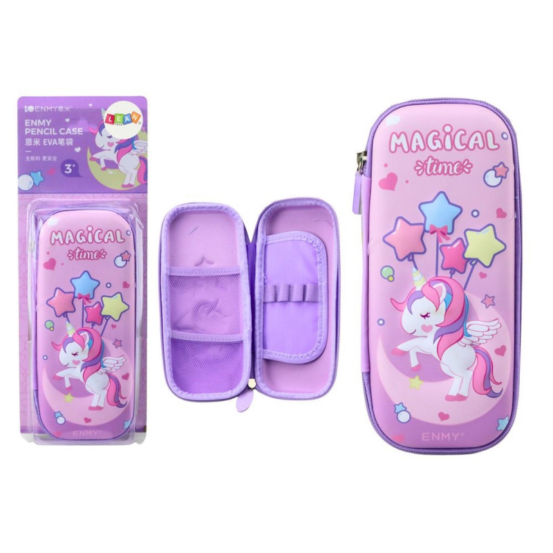 3D Ükssarvikuga lahtikäiv pinal, lilla, 23x10x5 cm