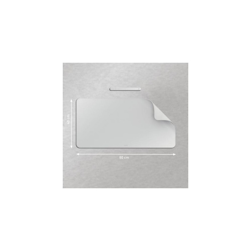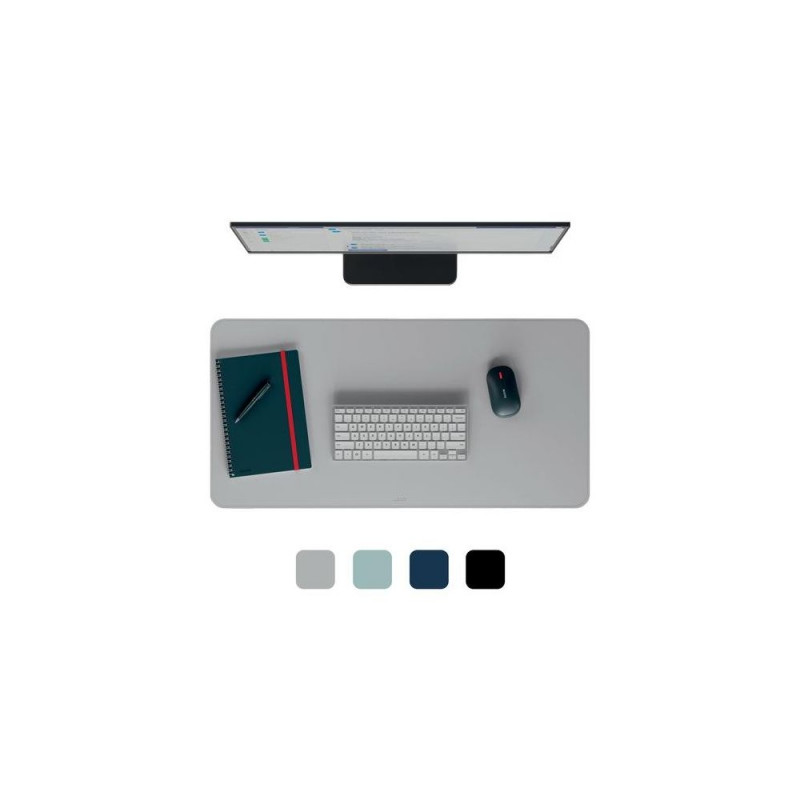 Stay productive and feel good wherever your working day takes you with the Leitz Large Desk Mat. It is an easy to clean, waterproof desk protector mat to keep your desk tidy. Its large 80 x 40 surface provides space for a keyboard, mouse, notepad and accessories and will protect your desk from scratches, stains, spills and scuffs. <br><br>Compatible with all laser and optical mouse tracking. Rollable with a strap to keep it secure for easy transportation and desk sharing. Plastic free packaging. Inviting matt colour with a minimalist design and rounded corners. <br><br>Multifunctional use as a writing pad and mouse pad making it suitable for both work and play. FEEL GOOD with Leitz.Leitz Large Desk Mat. Product colour: Grey, Material: Polyvinyl chloride (PVC). Width: 400 mm, Depth: 800 mm, Height: 2 mm