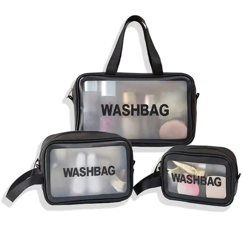 - Komplekt kolmest äärmiselt praktilisest veekindlast reisikosmeetika kotist kosmeetika hoiustamiseks.