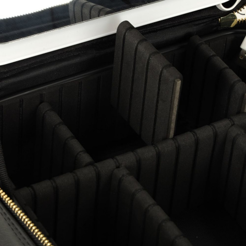 Must reisikosmeetikakott sobib ideaalselt teie järgmiseks reisiks! See ei ole mitte ainult ideaalne kosmeetikatoodete hoidmiseks, vaid aitab sul ka täpse meigi pealekandmist mis tahes tingimustes - sellel on LED-valgustusega peegel. Sisemuses on meigikotis mitu lahtrit, mida saad vastavalt vajadusele ümber paigutada. Lisaks on tasku pintslite või muude väikeste esemete jaoks.