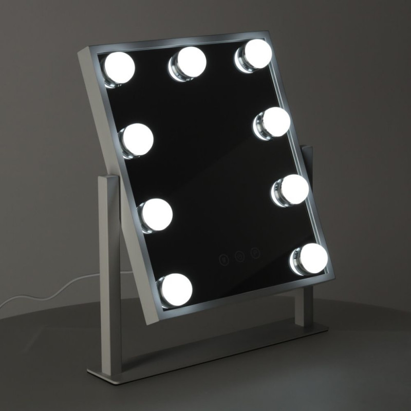 Tänu9 heledale valgusdioodile saad hõlpsasti meikida, isegi kehva valgustusega ruumides. Peegli puutenupud võimaldavad teil muuta valguse värvi sooja valge, naturaalvalge ja külma valge vahel ning selle intensiivsust . Stabiilne metalljalg libisemisvastase materjaliga tagab, et peegel ei kuku ümber, kui muudate selle nurka meigi pealekandmise ajal. Minimalistliku disaini ja valge värviga peegel onstiilne täiendus teie garderoobilauale või vannitoale, sobitudes ideaalselt mis tahes interjööriga.