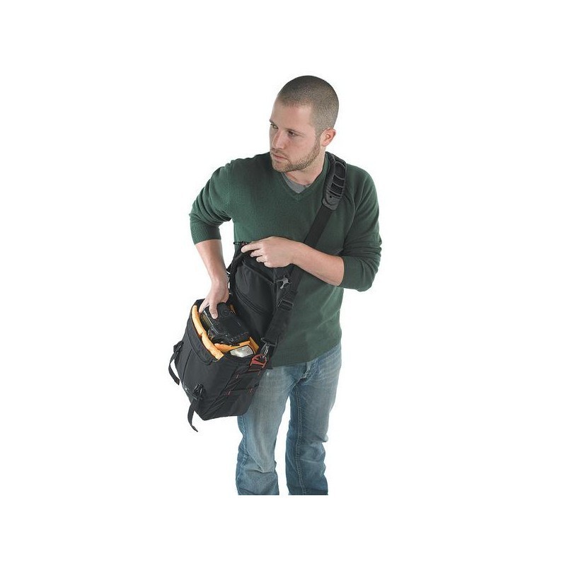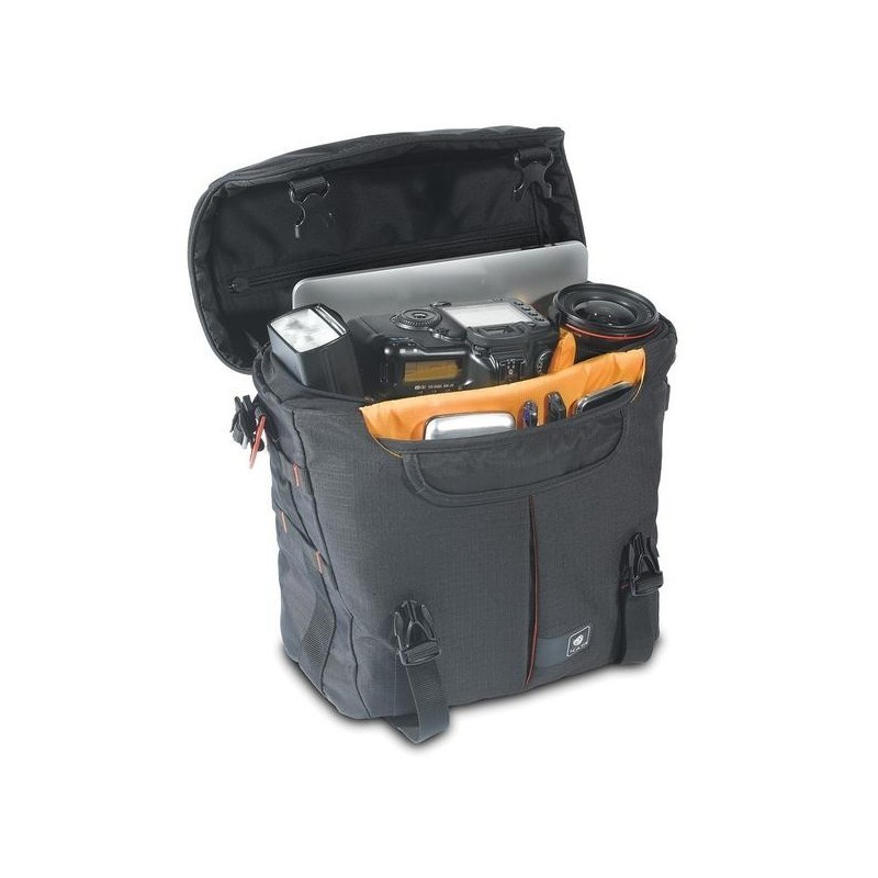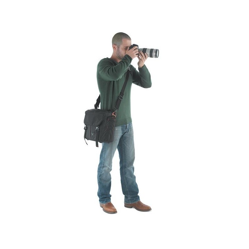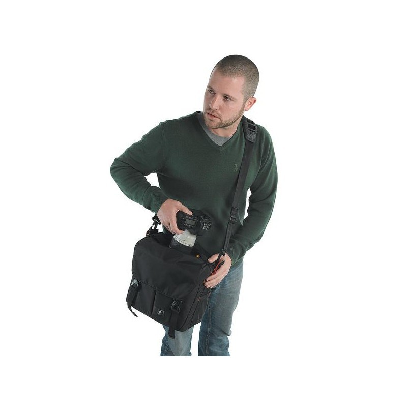 Õhuke, madala profiiliga professionaalne reporteri kott, mis mahutab professionaalse digipeegli koos 70-200 f/2.8 objektiiviga, välklambi, kaks lisaobjektiivi ja iPadiToode on arhiivis, kuvatakse vaid informatiivsel eesmärgil.