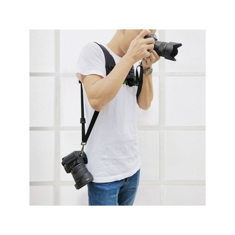 Valmistatud kvaliteetsest nailonist, on need fotograafiarihmad äärmiselt vastupidavad. Need võimaldavad teil kanda korraga kahte kaamerat. Kaameraid saab hõlpsasti ja kiiresti eemaldada ning kasutada alati just seda, mida parasjagu vaja on. Tänu kvaliteetse vahu kasutamisele on rihmad väga mugavad ja neid on lihtne kanda isegi mitmeid tunde järjest. Need jaotavad kaamera kaalu ühtlaselt ega koorma teie selgroogu.