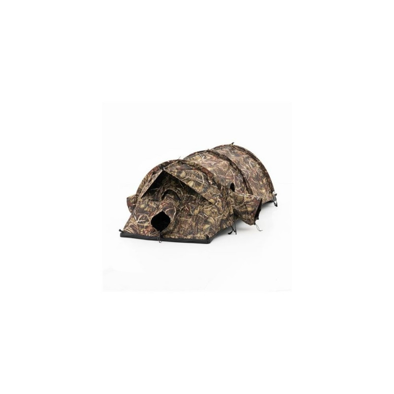 Maskeerimises on see telk tõeliselt tõhus. Vali kolme loodusliku mustri vahel – roheline, pruun või pilliroog –, mis sulanduvad enamiku keskkondadega. Kasuta sisseehitatud nööre, et kinnitada telgile looduslikke materjale nagu oksad, rohi või lehed, et veelgi paremini varjuda. Täiendava katvuse jaoks kombineeri telk meie maskeerimisvõrguga.