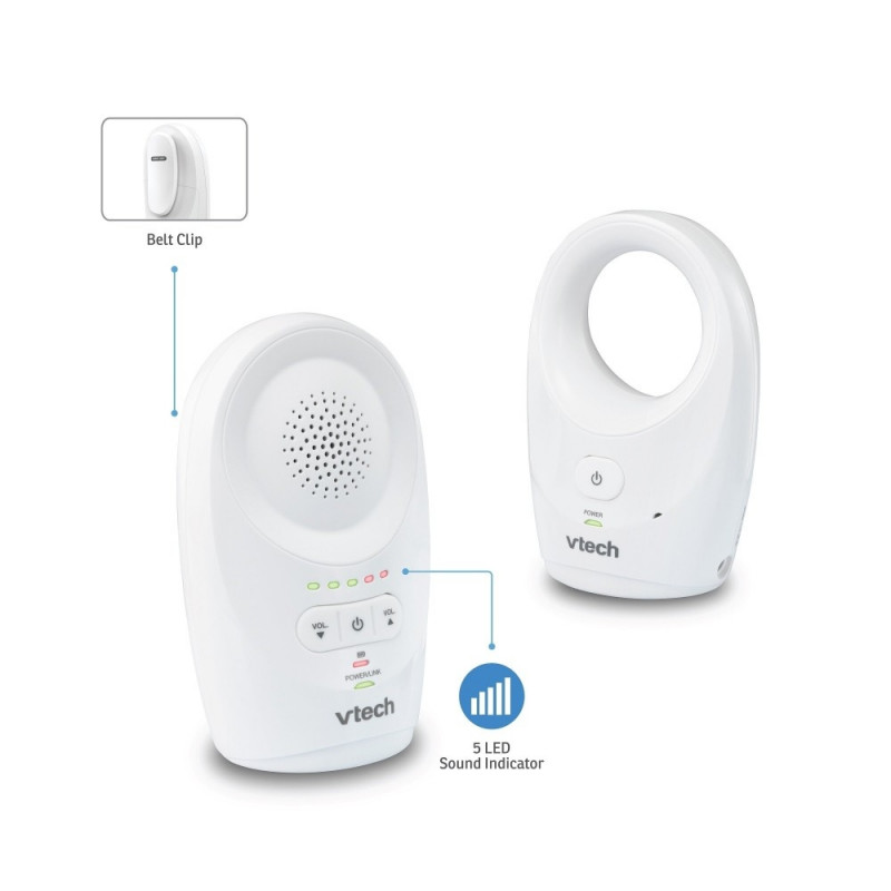 Graphic bars on the parent unit indicate the level of sound in your baby's room so you can visually monitor the noise level with the unit muted.