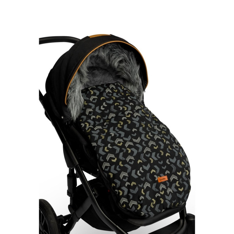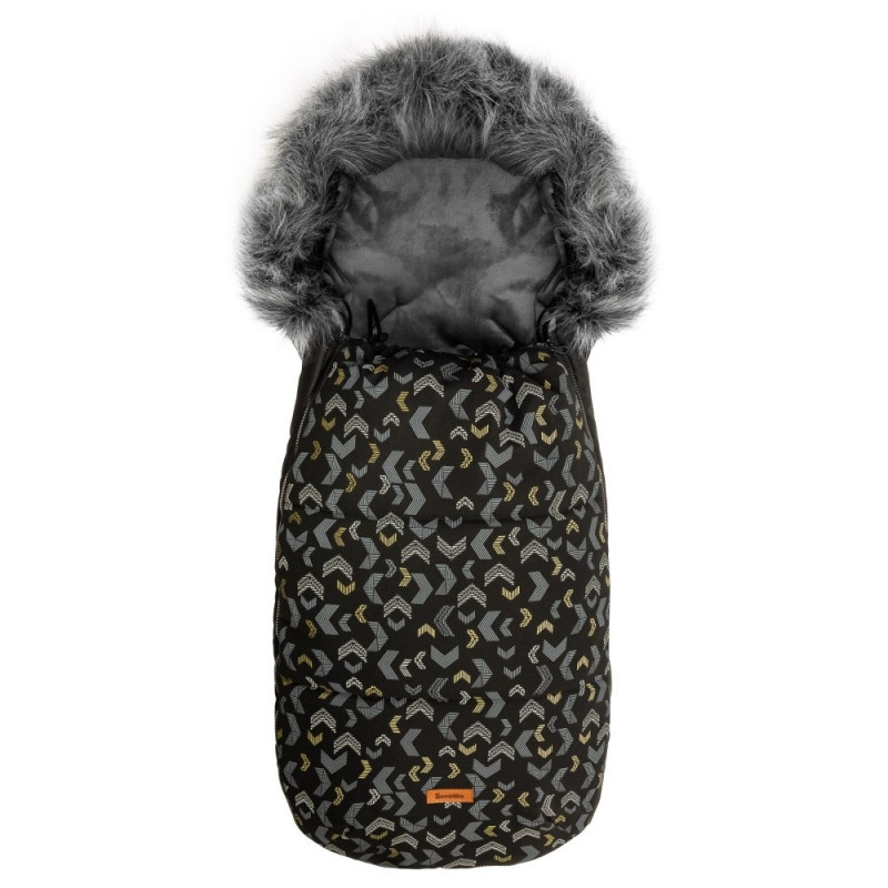 The romper bag fits push chairs of any style. It can be used in prams, strollers, and for sledges. It has holes for 5-point belts and a zip enabling to unzip it fast or to remove total outer layer.