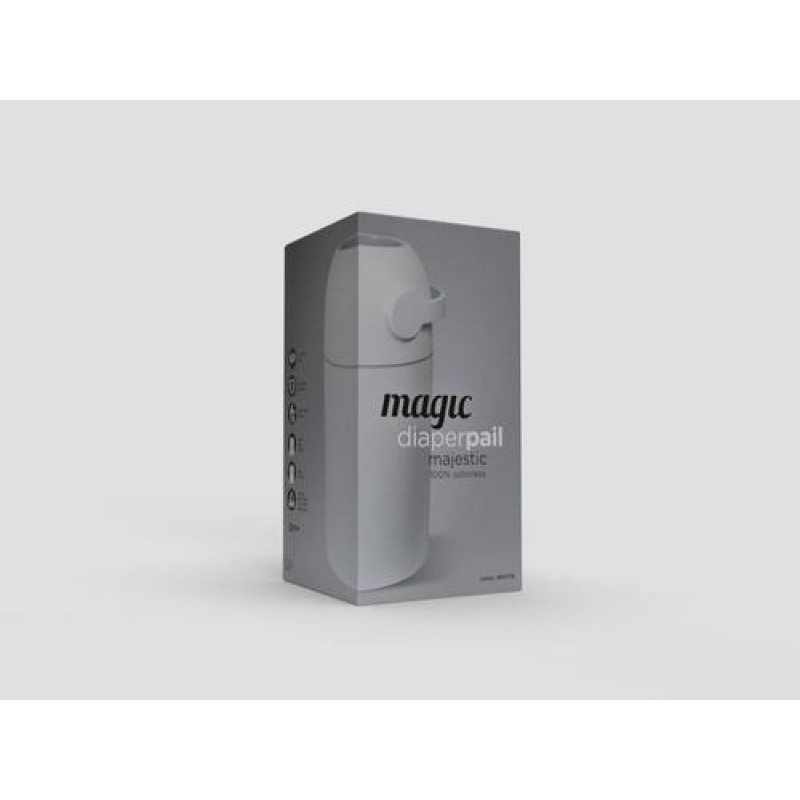 This 100% odorless nappy bin keeps your baby's room smelling nice and fresh.The MAGIC MAJESTIC is the best odorless bucket and the cheapest. This way you save a lot of money because the product uses ordinary plastic bags and not expensive cassettes/refills. In addition, this bucket is designed in such a way that it fits in every room. The beautiful design is modern and timeless. The MAGIC MAJESTIC is every parent's favorite. Easy and cheap to use and completely odorless if used correctly. The nappy bin can also be used as a regular waste bin after the baby's time by buying the accessory (lid with handle), making the product more durable than other nappy bins. Available in 6 beautiful colors.Magic Majestic. Type: Wet diaper pail, Product colour: White, Housing material: Polypropylene (PP). Quantity per pack: 1 pc(s). Width: 260 mm, Height: 520 mm